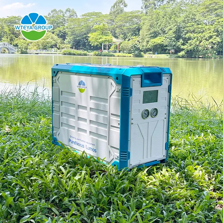 wteya携帯水浄水器—UFを組み合わせた浄水システム (セラミック超固定膜) とnf (ナノフィルトレーション膜)。 それは幅広い適応性を誇っており、自然の水域に設置された「スーパーフィルター」のように機能しています。堆積物、重金属、細菌、ウイルスなどの有害な物質を即座に除去し、濁った川の水と地表水を健康で直接飲みやすい水に変換します。安全で効率的で、水上で水を浄化し、すべてのドロップが純粋な本質に戻ることができます。